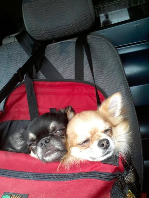 Petra kann ihre Hunde zur Arbeit mitnehmen - klar, denn Sie ist Hundespaziergängerin! Das hier sind ihre Hunde, „hundemüde“ nach einem harten „Arbeitstag“.